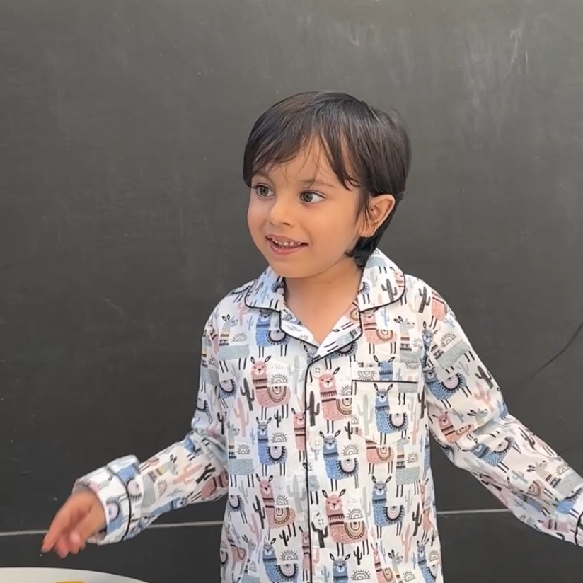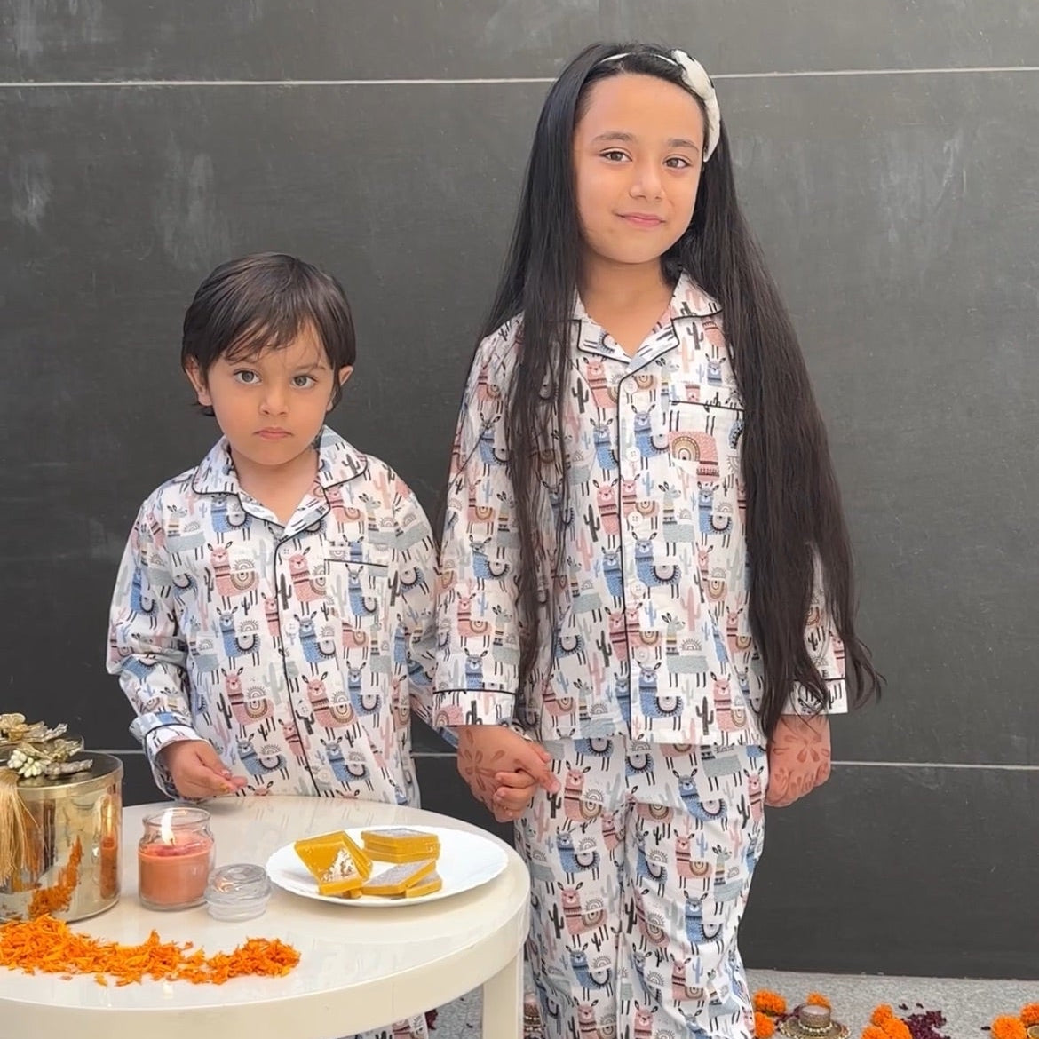 Step into dreamland with our whimsical Llama Land Nightsuit from Tuck and Tots, crafted for cozy cuddles and carefree slumbers! Featuring playful llamas and soothing hues, this set turns bedtime into a snuggly adventure for little dreamers and their mamas. Match, laugh, and lounge your way to the sweetest sleep!